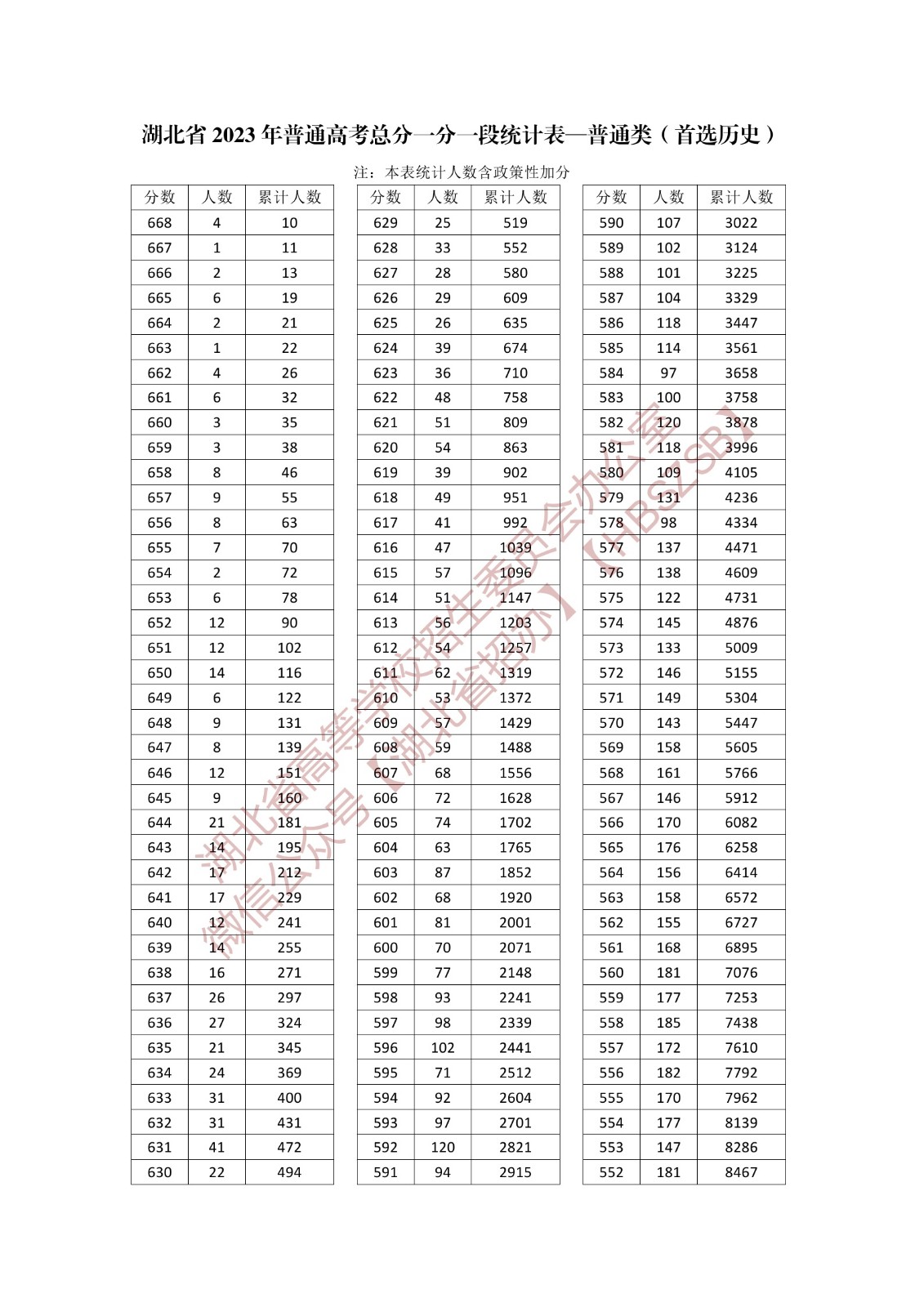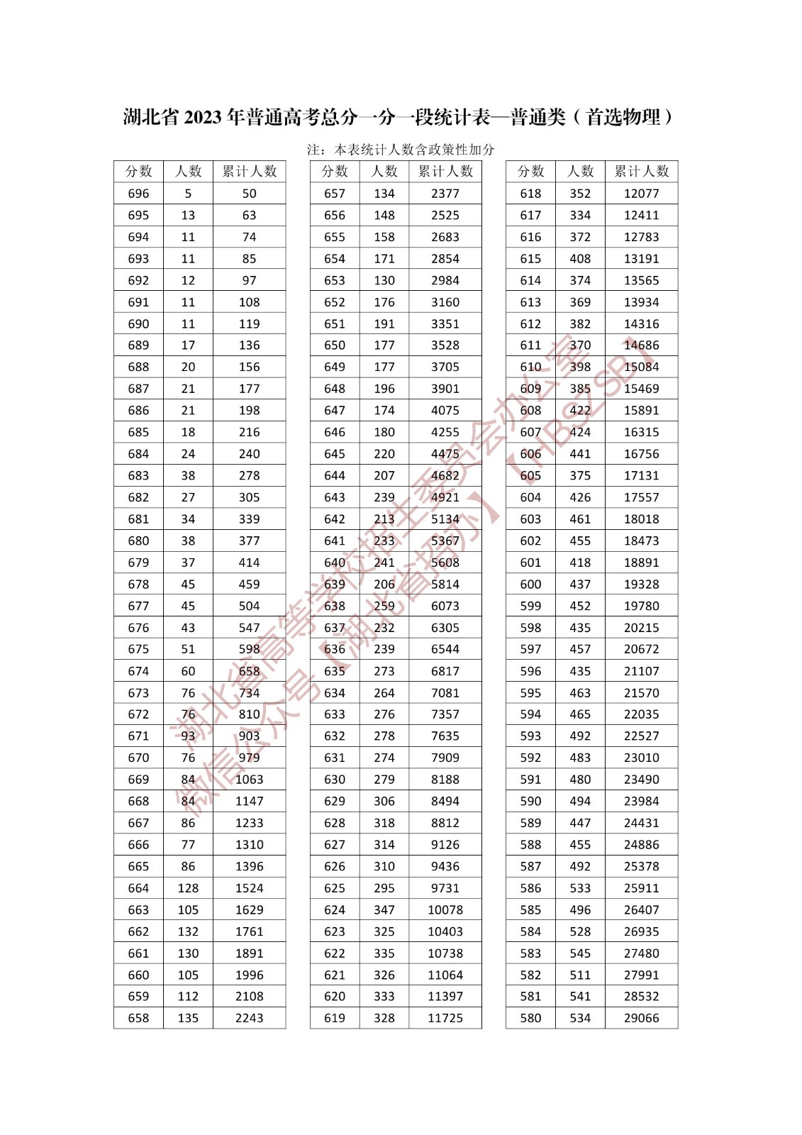 (以上为2023年湖北高考一分一段表,仅供参考,待新表出来后,我们也会及时更新到这里。)