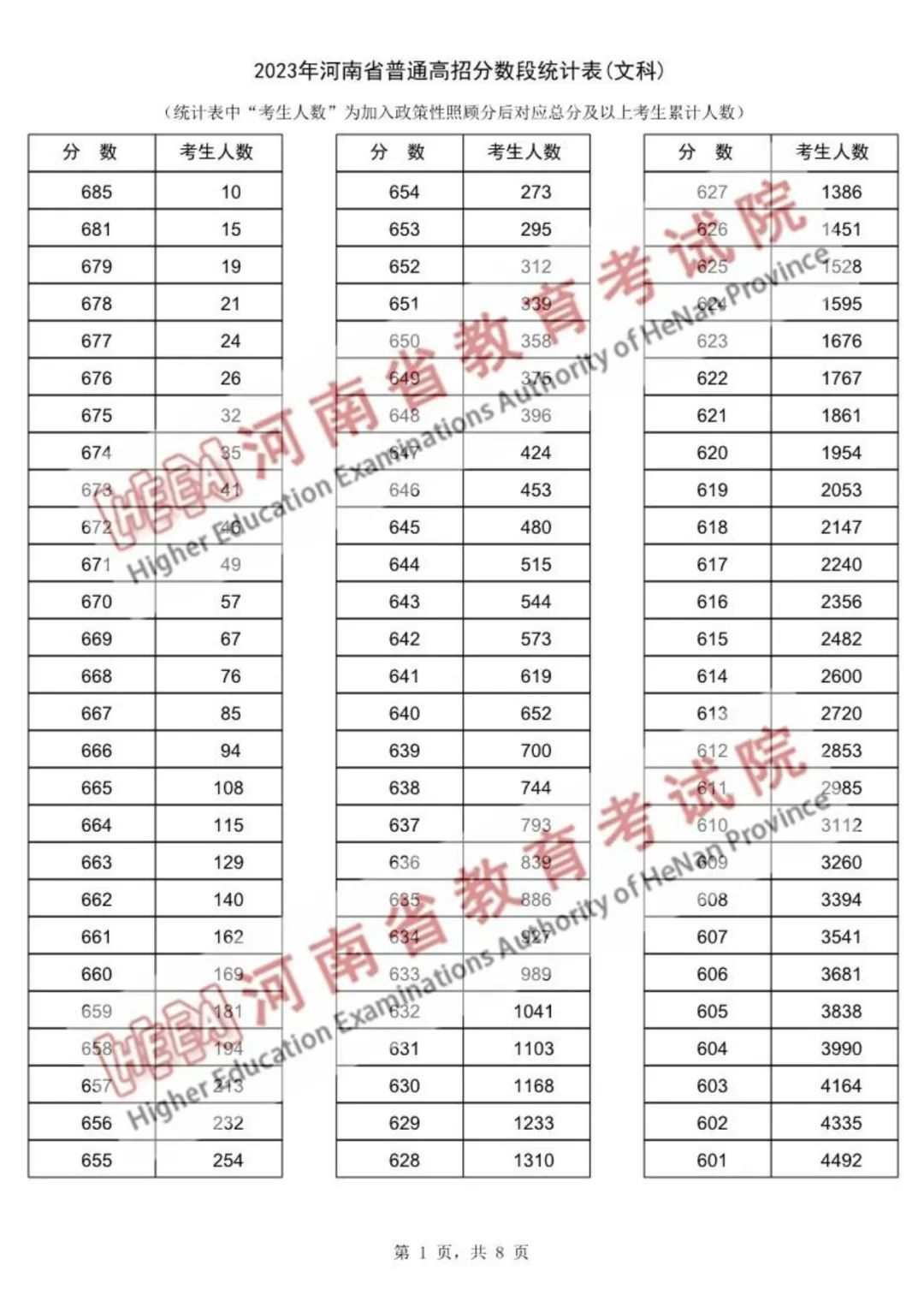 (以上为2023年河南高考一分一段表,仅供参考,待新表出来后,我们也会及时更新到这里。)