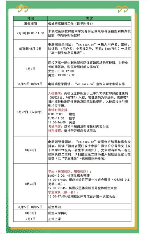 2021年福建厦门双十中学高一新生入学须知及指南