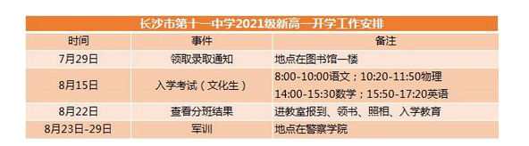 2021年湖南长沙第十一中学高一新生入学须知及指南
