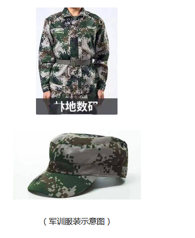 六、8月24日—8月30日,全体新生在校内进行军训,提前购买07式全身陆军林地作训服,军帽、腰带、深色运动鞋(图片如下)。