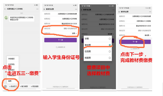 2.持中考准考证和身份证入校,在学校微信公众号上完成教材费缴纳,凭“缴费记录”和“准考证”,领取“录取通知书”。