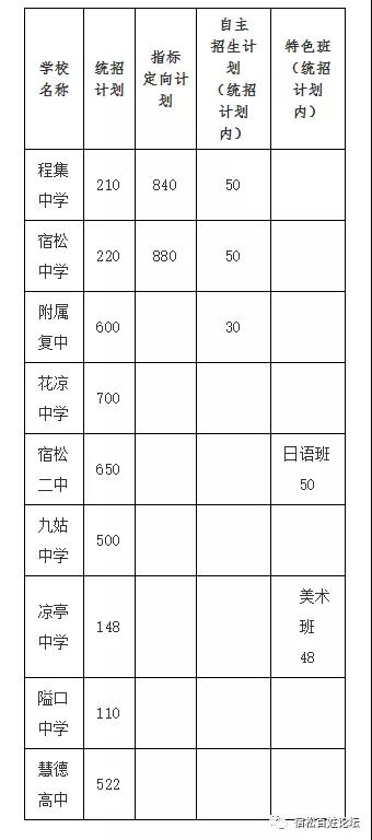 按照计划,2020年安庆市区6所省示范高中定向指标计划数分别为: