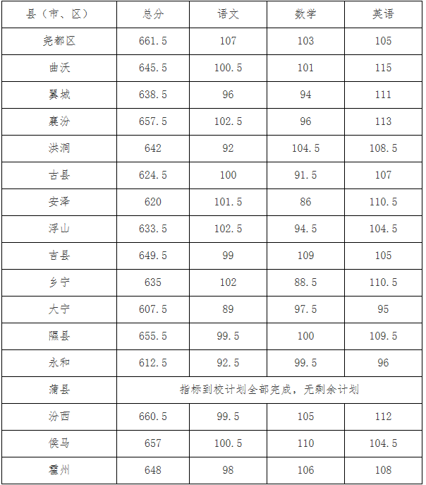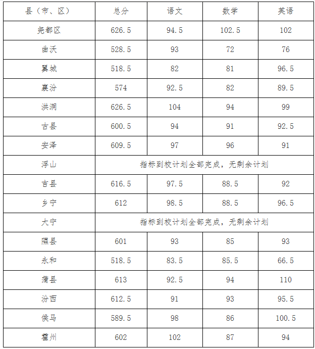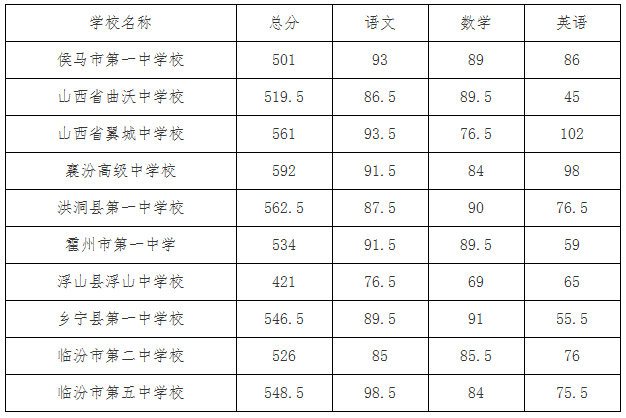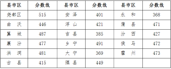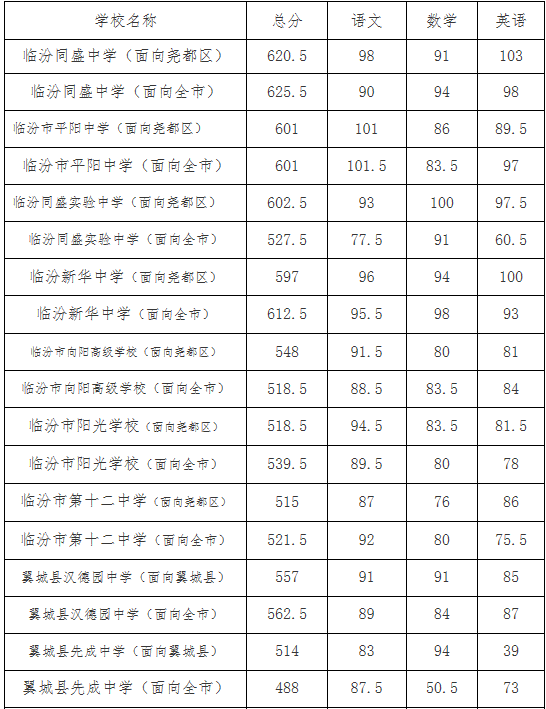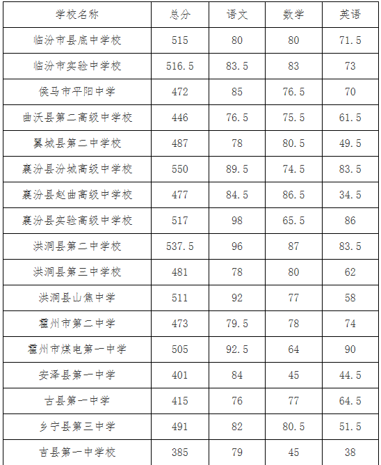关于公布临汾市2021年中考各县市区及各普通高中学校最低录取控制分数线的公告
