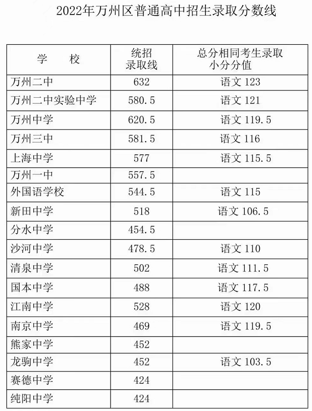 6月24日重庆市教委发布消息,2022年初中毕业生学业水平暨高中招生考试“联招”统一录取送档线为:589分