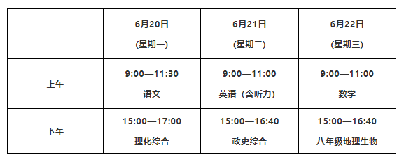 2023届应届初中毕业生(八年级学生)只参加地理、生物科目的考试。考生已参加我市地理、生物科目中考的,不再重复参加。因病或其他特殊原因缺考,以及考试报名结束后从外省、外市转入我市的2023届应届初中毕业学生,可以在2023年6月22日参加地理、生物考试,其考试成绩计入2023年中考总分。