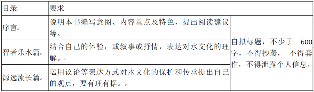 成果构筑 我们的项目活动到了呈现成果的时候,根据项目的方案,我们要完成《水——让生活更美好》成果集的制作。本集设“智者乐水”“源远流长”两个篇章。请你根据活动体验,任选一个篇章,按要求写一篇作文;或者,可以为本书写一个“序言”,与组内其他成员共同完成这本书的制作。(50分)